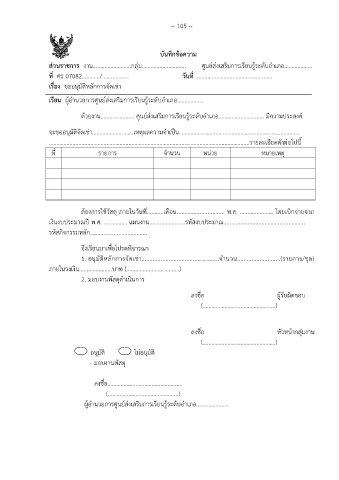 ด้วยงาน………………….. ศูนย์ส่งเสริมการเรียนรู้ระดับอำเภอ…………….....……….. มีความประสงค์