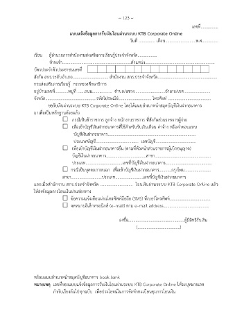 หมายเหตุ เลขที่ของแบบแจ้งข้อมูลการรับเงินโอนผ่านระบบ KTB Corporate Online ให้ระบุหมายเลข