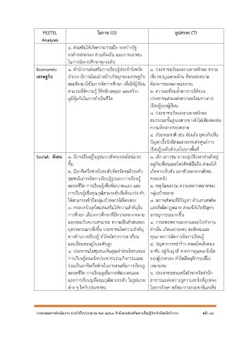 Social: สังคม 1. มีการเรียนรู้ในรูปแบบสังคมออนไลน์มาก 1. เด็ก เยาวชน บางกลุ่มใช้เวลาส่วนใหญ่
