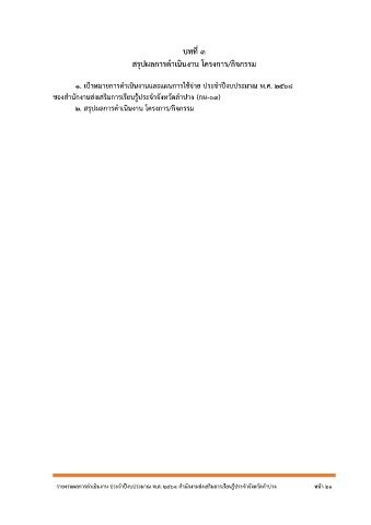 สรุปผลการดำเนินงาน โครงการ/กิจกรรม