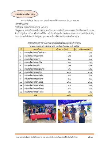 ตารางแสดงผลการดำเนินงานอาสาสมัครส่งเสริมการอ่านในเชิงปริมาณ