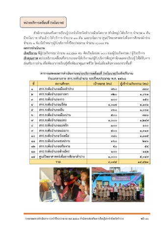 ตารางแสดงผลการดำเนินงานหน่วยบริการเคลื่อนที่ (รถโมบาย)ในเชิงปริมาณ