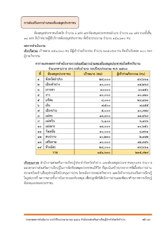 เชิงปริมาณ เป้าหมาย 151,630 คน มีผู้เข้าร่วมกิจกรรม จำนวน 235,929 คน คิดเป็นร้อยละ 100 ของ